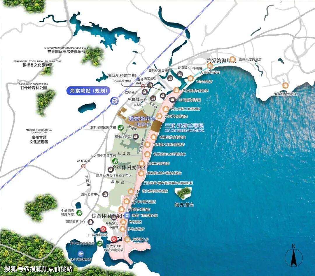 ◎岛外里高效通勤——间隔三亚凤凰机场车程约50分钟,间隔海棠湾高铁站(计划中)车程约10分钟;